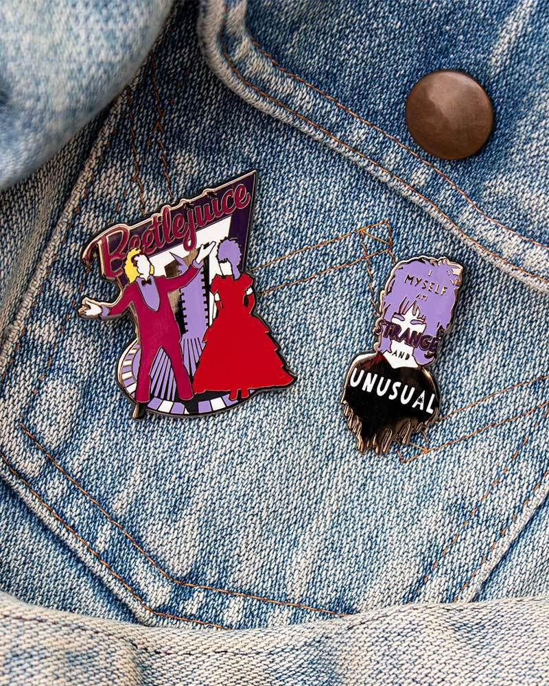 Bereiten Sie sich auf Halloween als echtes Kind aus den 90ern vor und nehmen Sie dieses High-End-Emaille-Set des Kult-Horrorfilms Beetlejuice! Diese Stifte eignen perfekt zum Hinzufügen eines Tim Burton -Stils (oder einem erschreckenden) Leben und sehen Sie auf Ihrem Mantel, Taschen oder Accessoires gut aus.