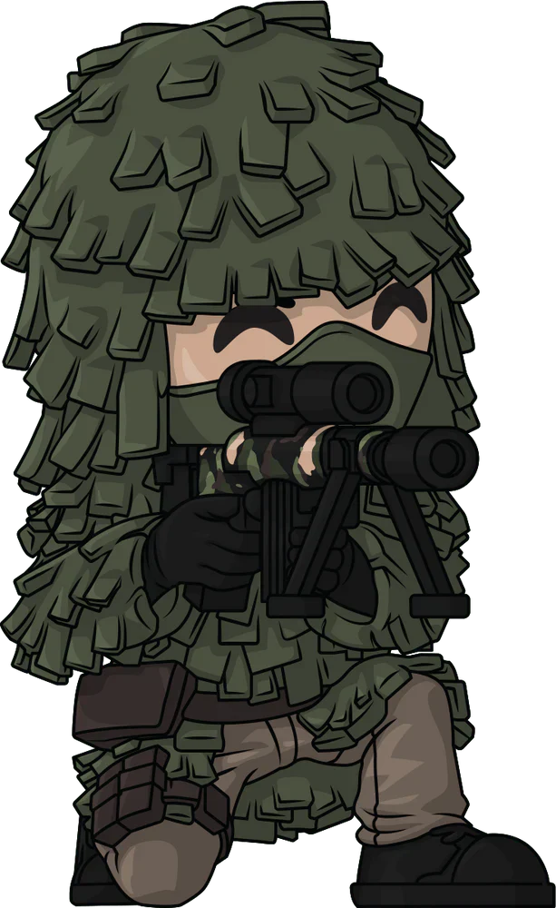 Boom! Photo du visage! Ce sniper a Youtooz en ligne de mire ! Accroupi à 4,2 pouces de hauteur, il est posé sur un genou en regardant vers le bas de son fusil camo surélevé, entraînant patiemment son réticule sur la prochaine victime sans méfiance. Pour aider à se fondre dans son environnement, il est recouvert d'un costume ghillie vert forêt feuillu et porte un pantalon marron kaki avec des bottes noires, avec un masque vert qui masque ses traits. Il peut rester parfaitement immobile comme ça pendant des heures juste pour… attendre… la carte est Rust ? Il est temps de sortir le 360 no scopes pour ma compilation YouTube ! Où est mon klaxon ? ! L'extérieur de son emballage est recouvert d'une carte topographique marron et verte, qui se reflète à l'intérieur pour l'entourer complètement. Alors que le manchon de protection est parallèle au motif de la carte tactique et a un soldat silhouette avec des lentilles de vision nocturne vertes illuminées à l'arrière.