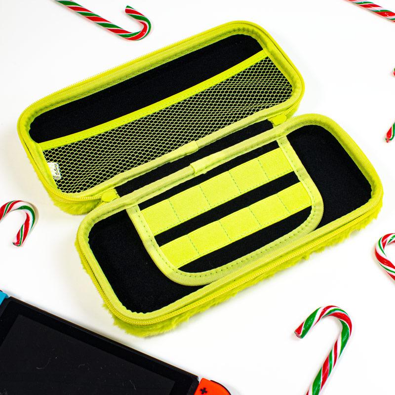 La rumeur veut que nous ayons un Switch Case qui est si bon qu'il a mis un sourire sur le visage du Grinch! Maintenant, il demande au Père Noël de lui en donner un pour Noël. Cet étui est doté d'une coque extérieure durable de qualité supérieure qui offre une excellente protection contre les chocs, les rayures et les coups. Profitez des compartiments qui permettent de ranger vos jeux et accessoires Switch préférés.