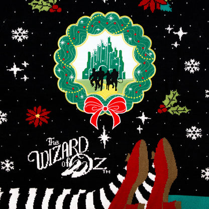 Tornado vous a balayé et vous a amené au pays d'Oz juste avant Noël ? Eh bien, tout ce dont vous avez besoin est une paire de pantoufles rubis magiques pour que vous puissiez cliquer trois fois sur les talons. Ne vous inquiétez pas, vous n'aurez pas à chercher bien loin pour le trouver car nous en avons un rien que pour vous sur ce pull de Noël 100% tricot. Sûr de faire tourner la tête des habitants d'Emerald City, ce vêtement d'hiver est parfait pour tout fan du film emblématique, Wizard of Oz.