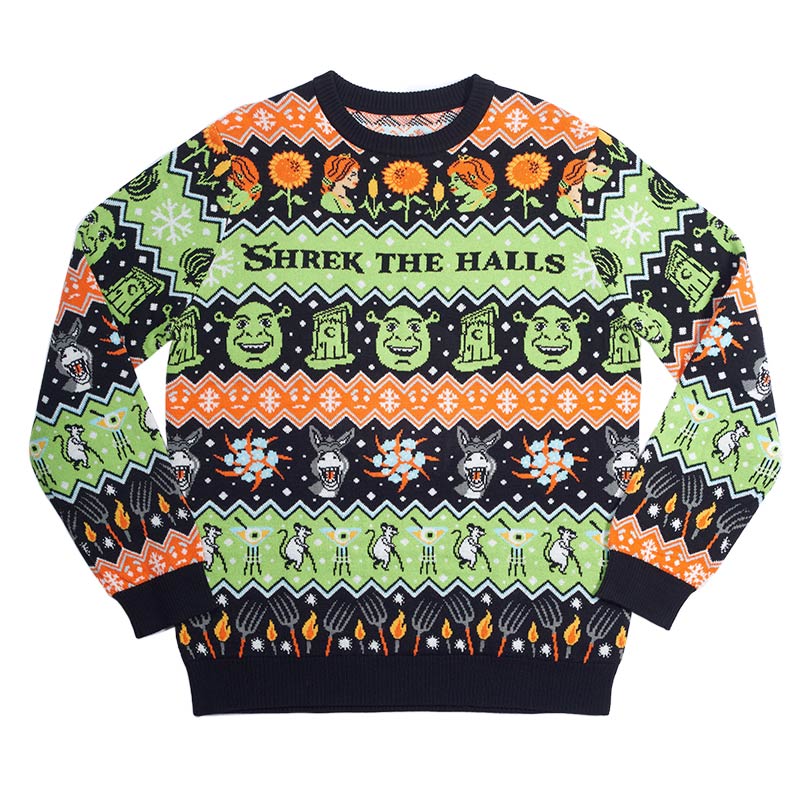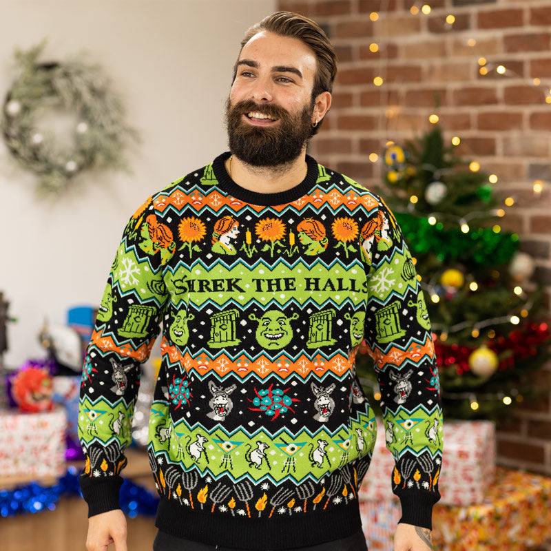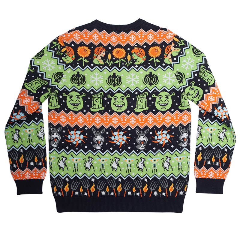 Il est temps de Shrek les couloirs avec des branches de houx ! L'ogre vert préféré de tous, Shrek, est prêt à célébrer la saison des fêtes aux côtés de l'Âne, de la princesse Fiona et de tout l'équipage. Ce superbe pull 100 % tricoté berce non seulement un design nordique classique, mais est également couvert de petites références Shrek telles que des tournesols, des souris aveugles et plus encore ! Si vous voulez vous sentir comme une star, assurez-vous d'emporter cette incroyable pièce festive pour votre garde-robe.
