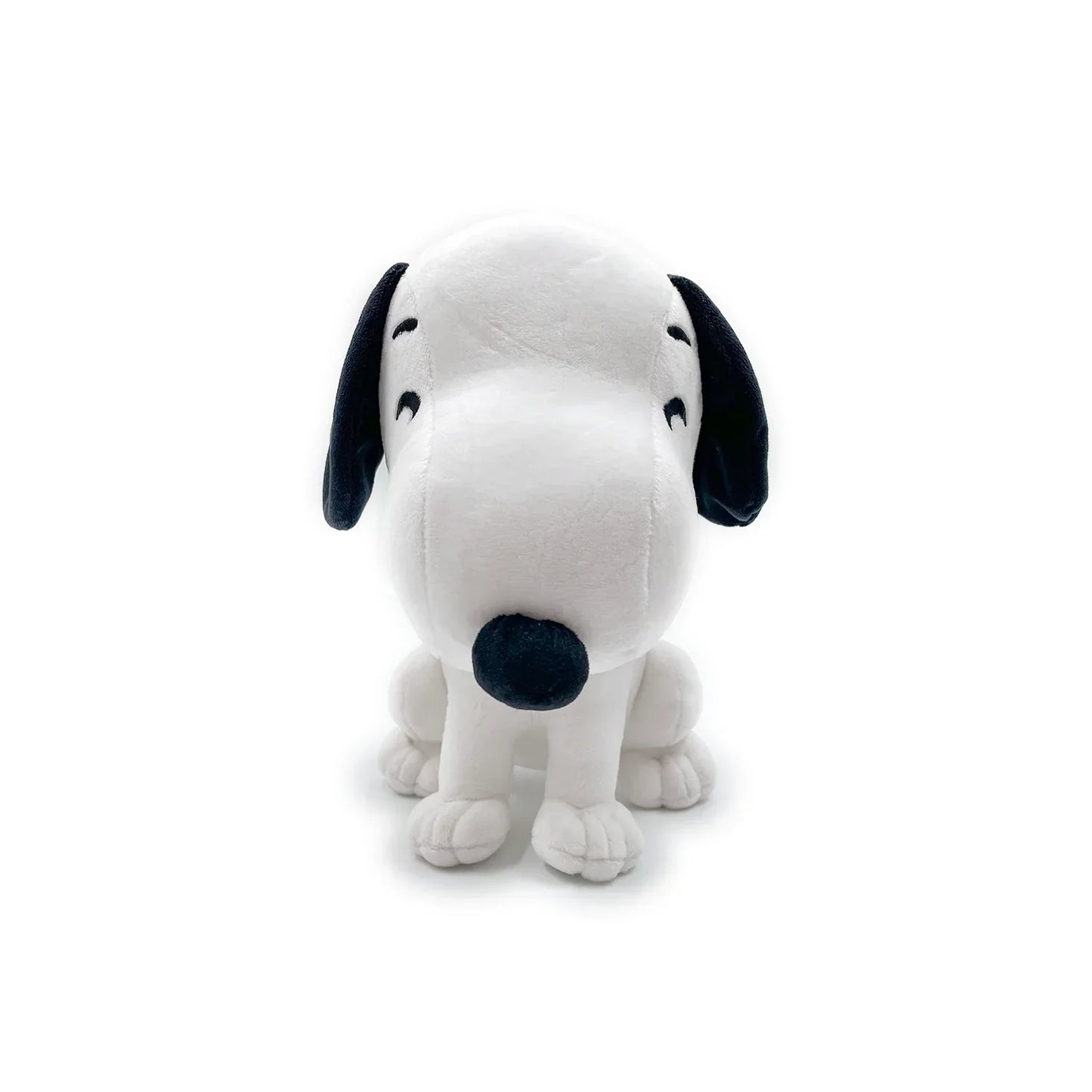Asseyez-vous Snoopy ! À 9 pouces de hauteur, Snoopy est assis à quatre pattes, mais seulement parce qu'il l'a décidé, pas parce que vous le lui avez dit ! Avec un large sourire traversant son museau et ses yeux noirs joyeux, ses sourcils levés affichaient une expression joyeuse entre ses grandes oreilles tombantes. Portant un simple collier noir autour du cou, son corps d'un blanc immaculé est marqué de deux taches noires sur le dos et d'une petite queue relevée. Cette peluche est emballée jusqu'aux coutures avec du coton 100% PP et est faite d'un matériau minky normal, absolument parfait pour câliner ou taper vos mémoires.