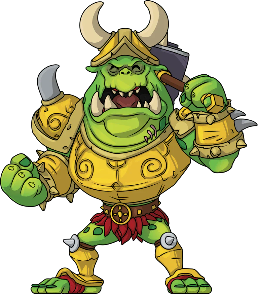 Simple? Aucun danger?! LAID??!! Vous êtes maintenant dans le royaume de Gnasty. Calculant intelligemment, il exécute son complot pour prendre facilement le contrôle des royaumes du dragon. D'une hauteur de 4,3 pouces, cette figurine est extrêmement détaillée. Tenant une masse à pointes de fer dans une main, il fait un poing géant avec l'autre. Son expression terrifiante comprend des dents, une langue et un nez sculptés. Il porte une armure dorée qui protège sa poitrine, ses avant-bras, ses épaules et ses tibias. Les orteils sont détaillés et comprennent une garniture rouge qui maintient l'armure ensemble. Sa boîte à fenêtre à double paroi est illustrée pour montrer toutes les lettres manquantes empilées sur son propre terrain.