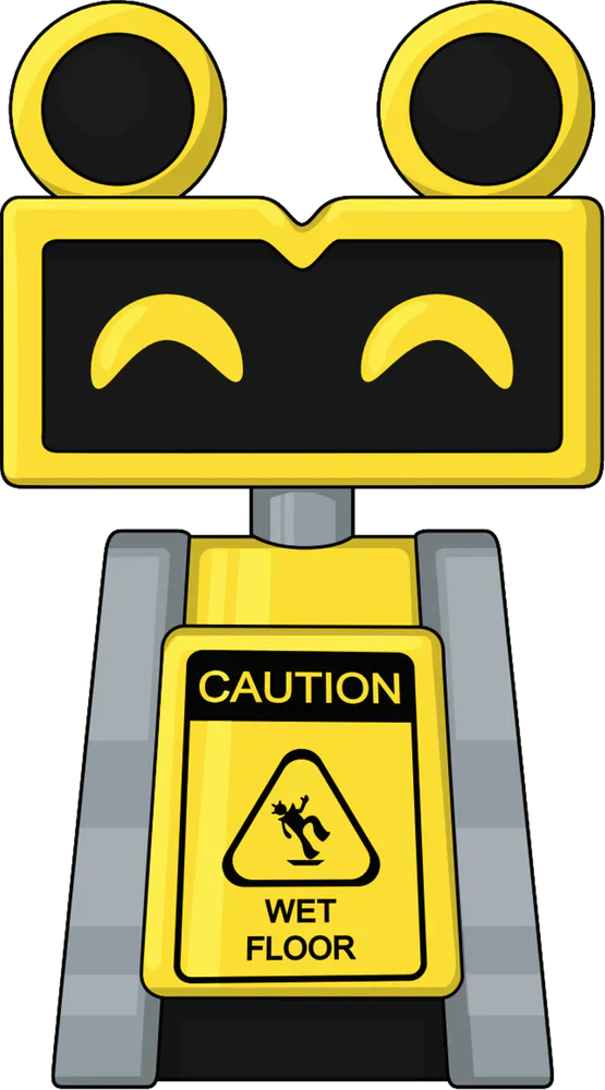 Le Wet Floor Bot est là pour vous avertir de ses débuts sur Youtooz ! À 3,7 pouces de hauteur, leur tête jaune rectangulaire plate est divisée en son centre en forme de V et renferme un écran noir foncé avec des yeux brillants tout en étant surmonté de grands cercles noirs et jaunes. Leur corps triangulaire parfaitement équilibré est construit avec des bandes de roulement gris clair de chaque côté pour une mobilité maximale, car son avant et son arrière vous avertissent d'un danger immédiat avec un panneau "Attention" fixé de chaque côté. L'extérieur de son emballage voit un Wet Floor Bot paniqué se retourner sur le déversement le plus glissant ! Alors que l'intérieur montre un moniteur de sécurité installé affichant Freddy, Chica, Monty et Roxy à travers les écrans tandis que le Wet Floor Bot se profile dans l'obscurité à ses côtés.
