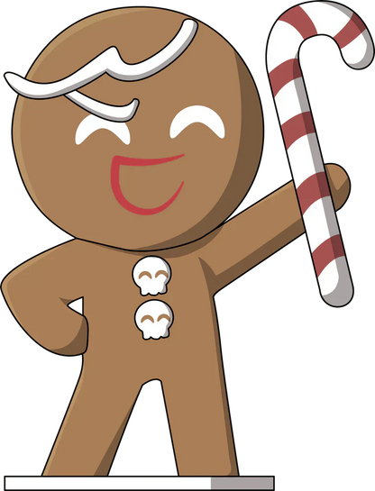 Nossa viagem está apenas começando! GingerBrave tem um enorme sorriso que irradia de seu rosto, animado para sua próxima aventura, seja qual for. Ele é colocado com a mão direita sentada no quadril e a mão esquerda segura com confiança uma vara em um doce vermelho e branco. É acessório com dois botões de caveira branca descendo em seu peito. O exterior de sua embalagem de paredes duplas mostra o interior da cozinha da bruxa com o forno iluminado. O interior é um fundo vermelho com lantejoulas e faíscas flutuando ao redor.