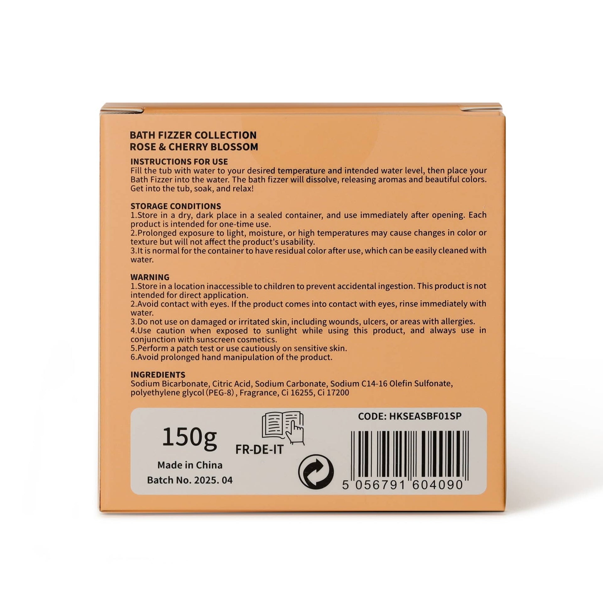 Bombe de bain (150g) Pourcentage de parfum : 0,8 % Taille : Taille de la boîte : 60*90*88mm 1 bombe par paquet Nom du parfum : Rose & Fleur de cerisier
